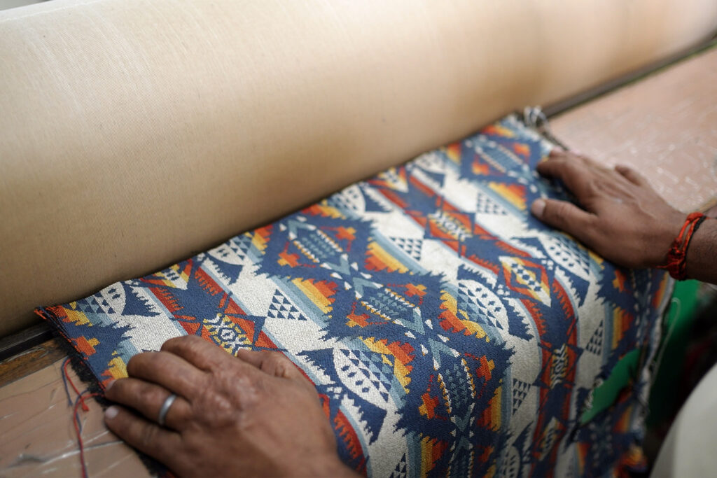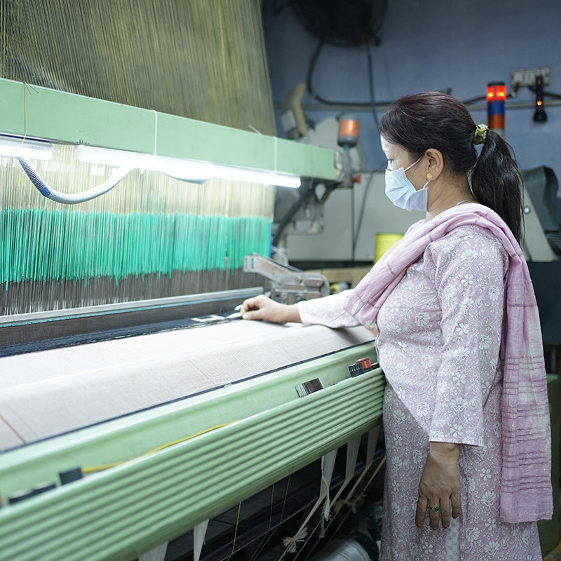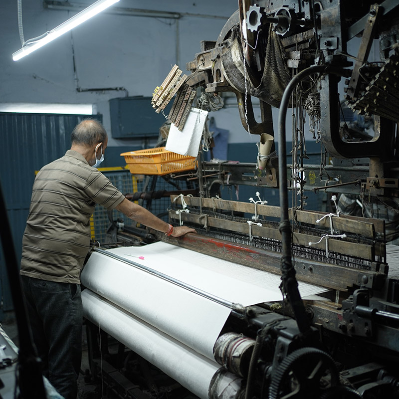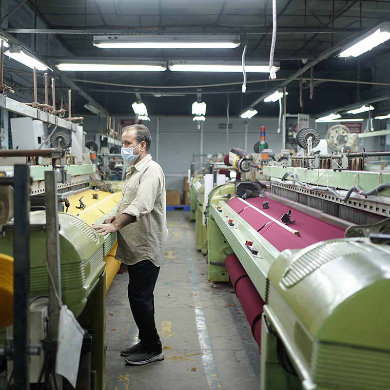 Handlooms, Electronic Dobby & Jacquard Looms, Computerised Knitting Machines - all inhouse for Quality control & MOQ flexibility