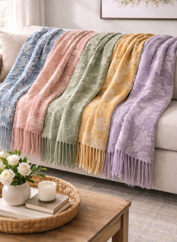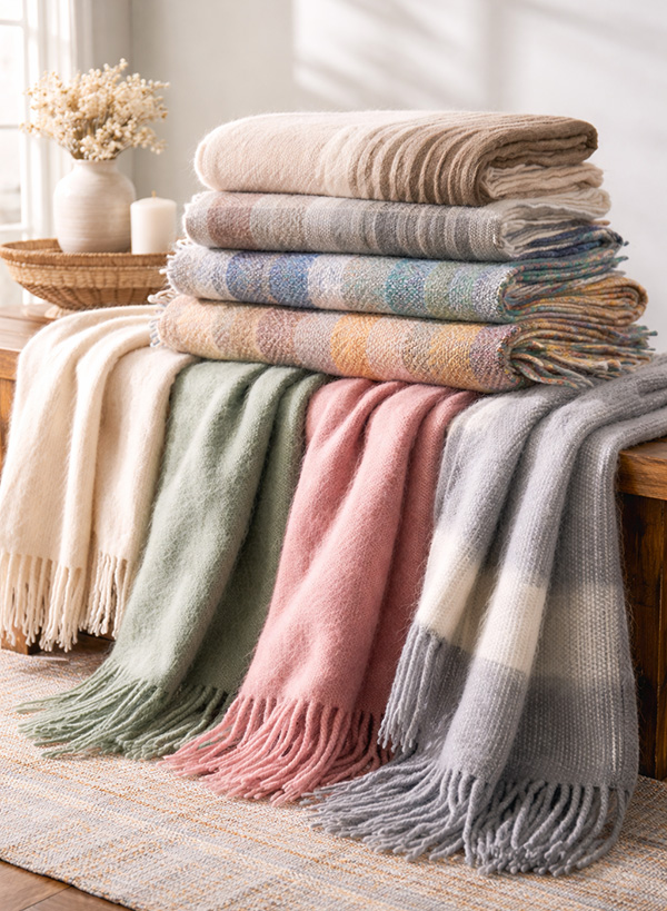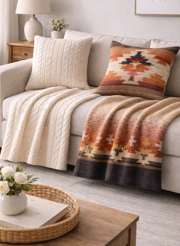 Throws, bed blankets, and cushions form one of our strongest and most versatile product categories. We create design-led collections that range from artisanal handloom pieces to large-volume woven programs.